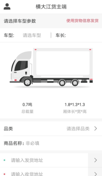 横大江货主端是为有货物运输需求的生产企业以及有发货需求的个人用户,提供货源信息管理及运输需求发布服务的APP。