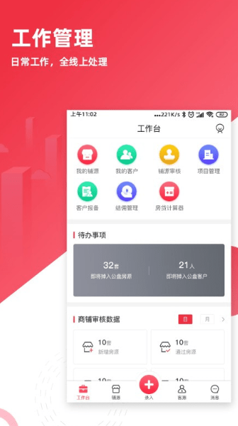 商旺宝经纪人是一款非常给力专门为房产经纪人打造的办公服务软件,你可以使用软件更好的进行各种处理,并且软件操作简单便捷,还可以进行各种在线联系,房产管理,更好的帮您随时随地查询信息,给您更好的智能服务。app整合商旺宝平台资源,对接大数据系统,利用智能引擎,提供铺客源的录入、查询、供需精准匹配,并实现客单资源共享,助力经纪人签单,实现业绩增量。