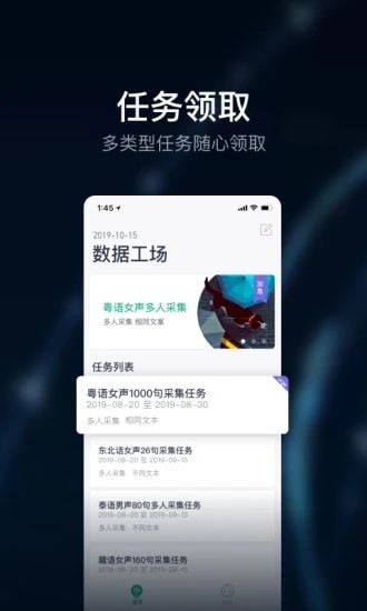 打开软件就可以查看到丰富全面的语音采集任务,可自由领取