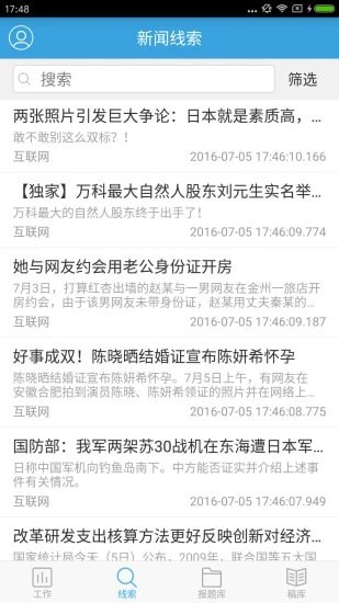 【线索库】汇集了新华社通稿、400热线、互联网热点、应急预警信息及手机爆料等多家信息来源,网络热点即时推送