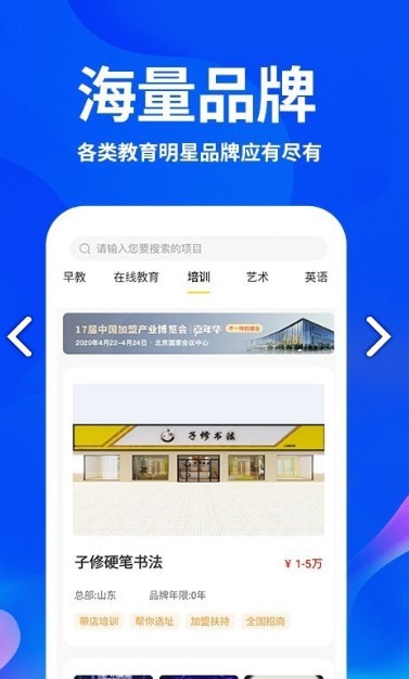 幼儿教育、艺术教育、机器人教育、K12教育,各种热门加盟项目,满足您个性化的投资需求。