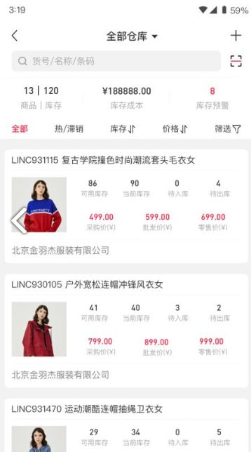 随时可以查询各个商品的库存数量,库存不足的话就能及时的采购;