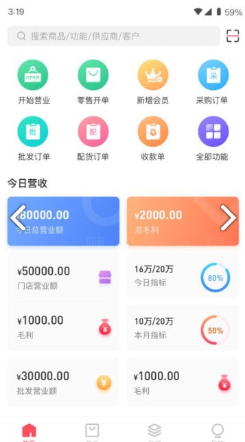 随手可以查看采购订单与批发订单,在线可以随时创建配货订单和收款单;