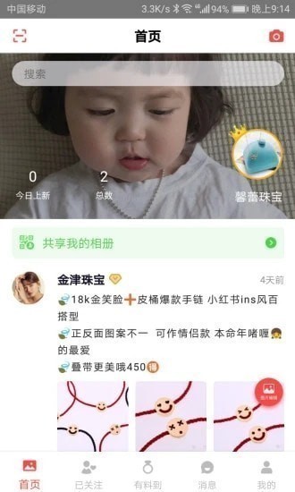 粉丝或代理只要关注你的相册,可随时查看更新的图文消息,并支持一键分享至好友、朋友圈、微博;同样的,你也可以关注供应商或好友的动态相册,并同步他优质的图文内容至自己相册,并可以一键分享至朋友圈、微博;