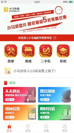 小马快修app是一款为维修工程师量身定制的应用。通过它维修技师可以接到来自“小马快修”的客户订单。从此告别背包客式的低效工作方式。