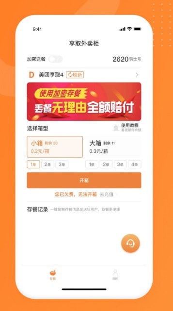 骑手使用这款软件可以快速的取餐或者存餐,还能够加密存存餐;