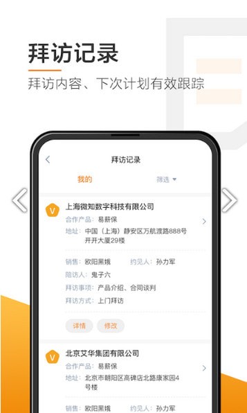 客户的拜访、跟访等记录信息都完整的为你记录,轻松查看;