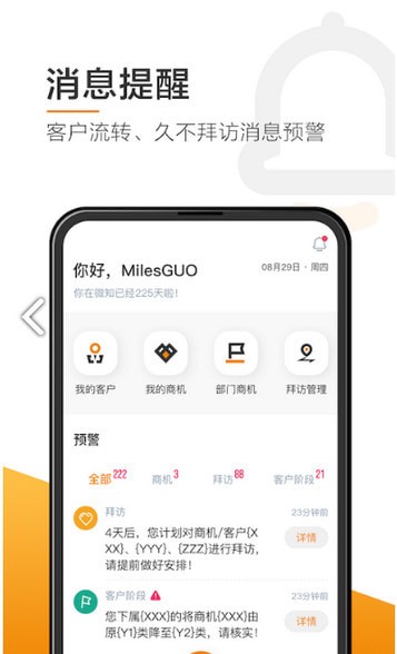 客户流转、拜访消息提前预警,菠萝秘书app非常智能。
