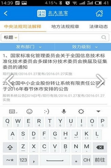 北大法宝app是一款效率办公应用,包含法律法规、司法案例和法学期刊等海量信息。北大法宝1985年诞生于北大法律系,是由北大英华公司和北京大学法制信息中心共同开发和维护的法律数据库产品。