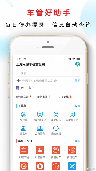每日代办事项、批量查违章、自动催交租、续保年检自动提醒、自动识别证件、征信核查等几十项效能提升工具;