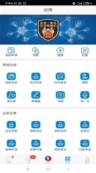 【智能化的办公应用】请假、报销、出差、外出、日报、公告、报表等OA功能,