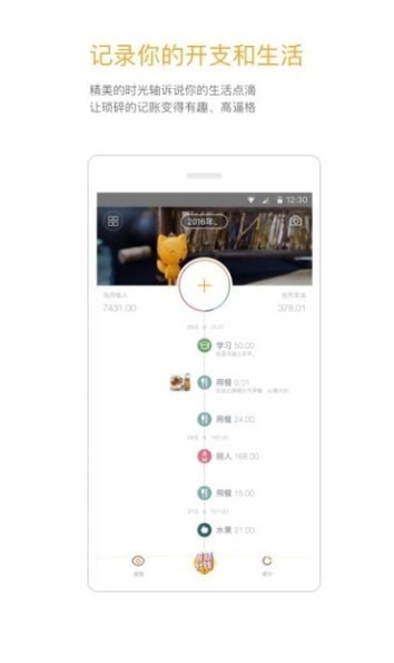 1、首家时间轴记账软件:用时间轴组织账目,这样的结构给设计提供了更灵活的空间,可以后续轻松对接有用的“轻理财记账服务”。
