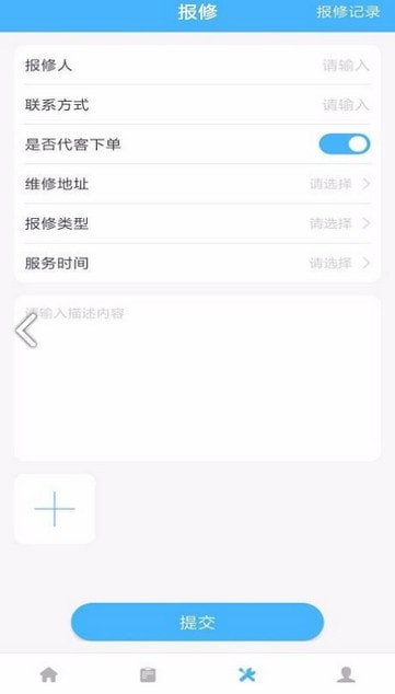包含在线报修功能,能够自主填写报修内容提交,同时也可以代客下单,轻松完成遇到的问题;