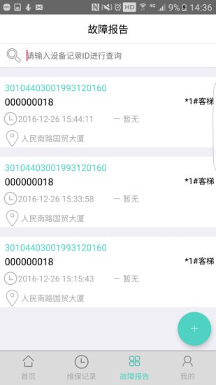 维保人员到达现场后在APP上进行维保签到,并将维保记录、故障记录在APP上进行保存,为维保单位对电梯维保质量管理和决策分析提供数据支撑。
