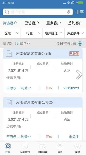 利用公司先进的数据获取能力,将辖区所有企业信息进行筛选