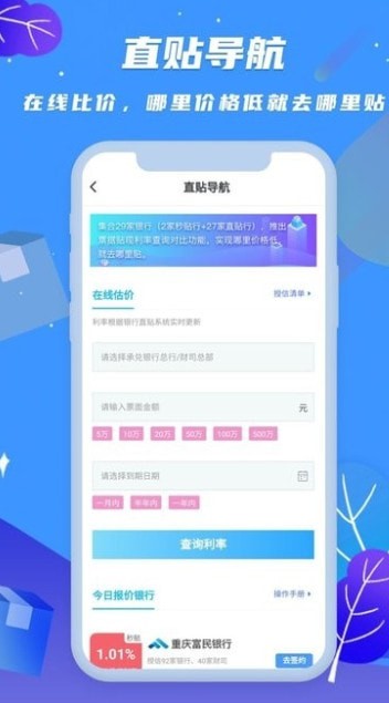 为有贴现需求和企业客户提供合法、合规、便捷、安全的票据银行直贴服务