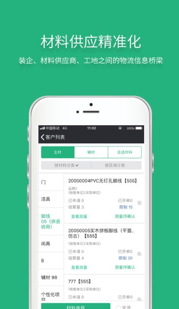 3.材料物流管理:打通预算物料清单与物料调拨的信息通道,实现物料用量的有效控制,实时分析物料成本、利润