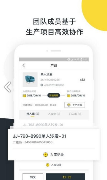 查看待办事项的详情,可以对产品的生产资料和发货、入库记录进行了解