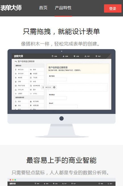 表单大师是一款专业的数据分析管理平台,为全国数万个团队提供优质专业的服务,操作方便简单,简单拖拽就能轻松设计表单;最实用、最简明的数据分析图表,让你可以轻松分析你的商业数据,获得的数据支持Excel导入导出保存。