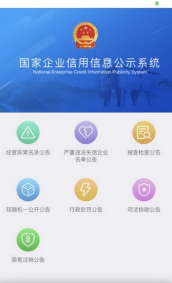 国家企业信用信息公示系统安卓版是一款由国家推出的企业在线查询征信软件,可以及时在线查询自己企业的信用值,了解最新相关征信信息,为全国大中小型企业提供专业的征信服务。