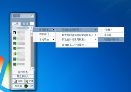 按切换按钮,依次选择 常用联系人——切换到常用联系人——项目部资料员(这个是自己命名的分组)