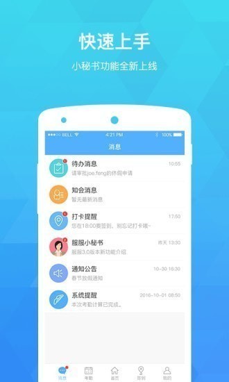 服服考勤登录版,集内外勤打卡、移动申请与审批、时间管理、组织人事、移动办公、异地管理与智能运算服务于一体,为中小企业提供优质、便捷、低成本的HR管理途径。