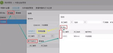 注:此操作必须在考勤机正常联网状态下进行,若员工信息未正常下发,在软硬件正常对接情况下,将区域内的员工删除再重新添加