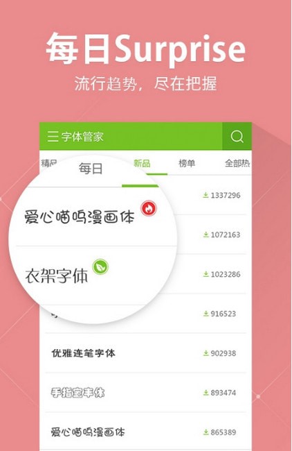 4.【每日精品,百变分类】“百变分类”帮助你快速找到你的TA。“每日精品”字体背后的故事,我都想说给你听。快来字体管家找我吧!