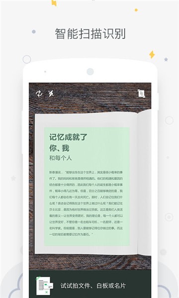 • 实用的扫描功能将书籍、纸张、板书和名片信息全部数字化保存到笔记中,方便查阅