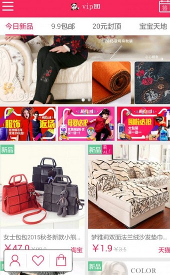 vip团9.9元包邮移动购物应用,商品主打低价超值,数千万淘宝用户的选择。每日汇集全网最新最全最精选超值的限时9.9折扣包邮商品,包括服饰、居家、母婴、美食、鞋包、美妆、数码电器和文体等八类商品折扣特卖信息。每天上午10点准时开抢!发现折扣,享受优惠,一键购买,包邮到家。