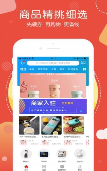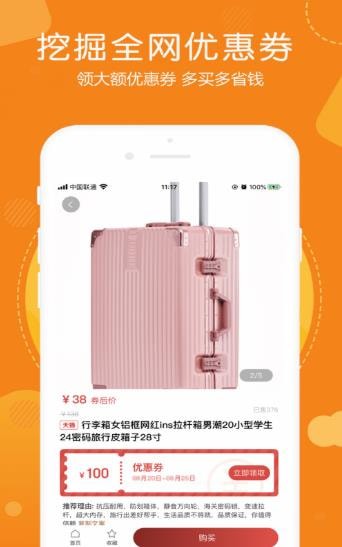 (4)每天精选全网流行热销的有优惠券的商品,人工在海量的商品中严选对比,对价格更便宜更值得买的商品进行推荐,让您的购物更省心、省时、省钱!让用户的每一次购物都获得轻松愉快的网购体验。