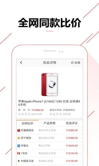 一键查询热门分类的商品,提供全网比价功能,如,手机,电脑,电视,路由器,智能音响,耳机,空调冰箱等生活家电类比价,手机数码类,摄影摄像类,办公网络类,电子教育厨卫电器类,手表闹钟户外运动等个人化妆和汽车用品服饰鞋帽礼品箱包珠宝玩具类的价格查询。