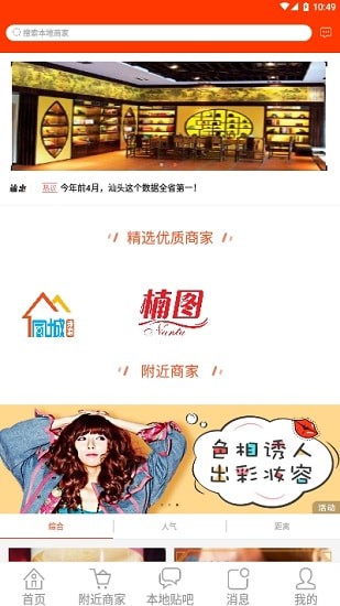 3、聚焦了所有同城资讯、同城活动、全城商家、商家优惠、分类信息、本地贴吧等一站式信息平台。