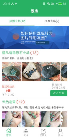 翠库app微商代.购只需要将商品图片转发到微信群和朋友圈即可;客户购买后再从翠库APP下单,平台负责鉴定证书、加工设计等相关售后服务。提供7天鉴赏期,买假包赔承诺;每天多个专场最新货源发布,配备专业图文素材。