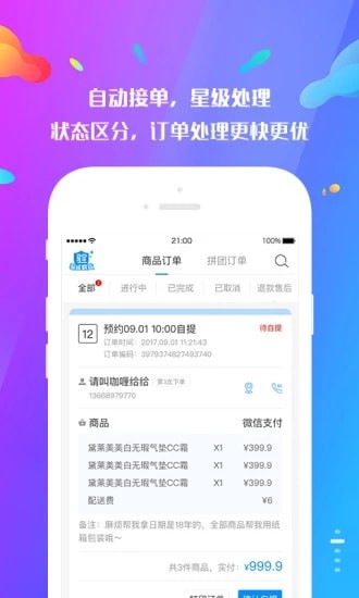 4、快捷查看消息:较短时间内了解订单动向、活动和公告;