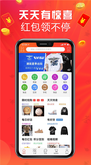 商品齐全,分类清晰,明星网红同款的服饰、包包、化妆品应有尽有,爆款商品天天更新。