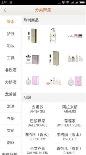 主页:通过点击主页内活动广告,可迅速查看都塔免税店的优惠信息,通过各种主题商品分类,尽情选择自己喜欢的商品吧。
