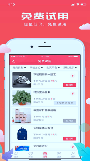 3.商家可发布各类试用品或者打折活动,海量优质商品免费试用。