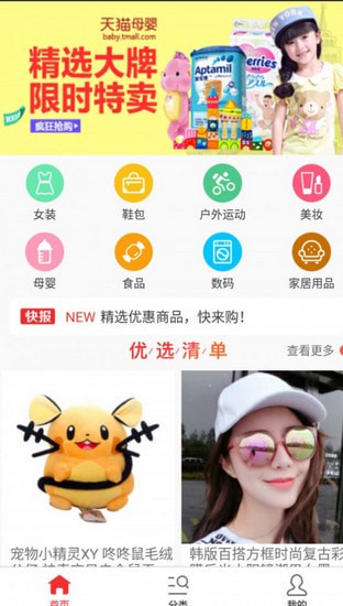 3、全品类覆盖:女装,男装,零食,箱包,配饰,数码母婴等应有尽有。