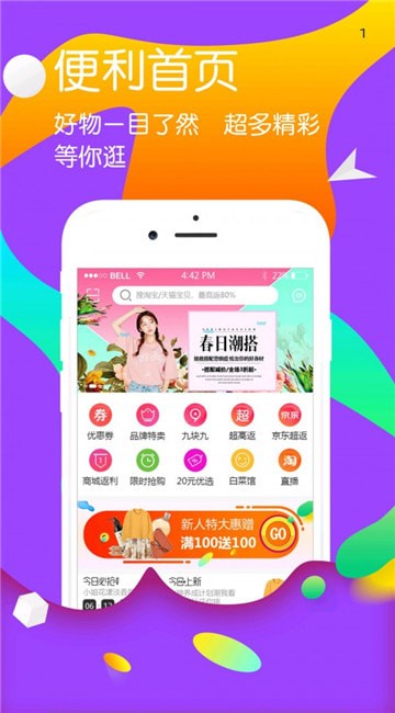 2.超级返:淘宝天猫产品:男装,女装,童装,化妆品,护肤品,内衣,家电百货,美妆,食品,母婴家居,鞋,包,配饰,运动户外,手机,奢侈品牌,儿童。30天每日打折,底价,优惠券,特卖。超高返利等你来!