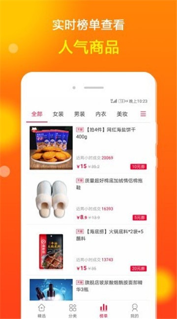 4、实时排行-实时疯狂排行榜TOP100,每2小时更新精选超值特卖优惠券,券后省钱高达90%;