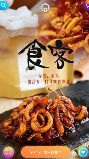 进入APP就像进入了电影院,全部美食都变成了30秒小电影,新颖搞笑的内容给用户带来全新的购物快感。