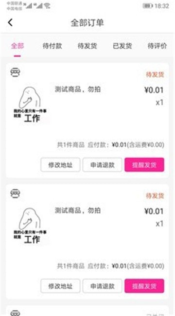5.在订单的详情页,即可对下的订单进行提醒发货操作,还可以查看自己的历史订单记录