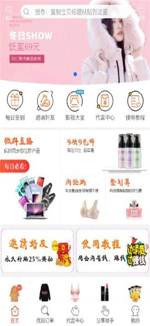 3.内嵌手机淘宝模块,一键免费领取优惠券并跳转至手机淘宝对应商品下单。需先登陆手机淘宝账号,下单时自动使用优惠券。所有已购买订单在淘宝中可查询订单详情。