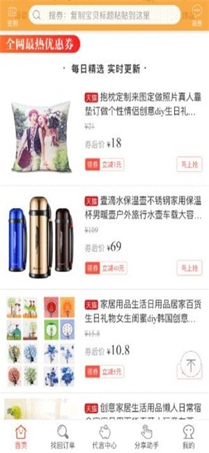 4.每天会更新上百款带有优惠券的商品,数量多,产品全,优惠券天天送!先领券,再下单,比别人少花钱!淘宝网省钱购物APP必备软件!