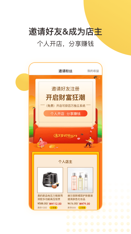 用户需要成为会员后才可享受金戈多优质购物体验和完美服务,用户在邀请码注册成功后也可以升级成为金戈多店主,可获百万独立系统,开启你零成本投资,无库存经营的创业之旅。