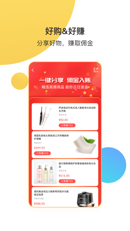 平台上商家能够进行商品的共享,让销售费者分享销售。
