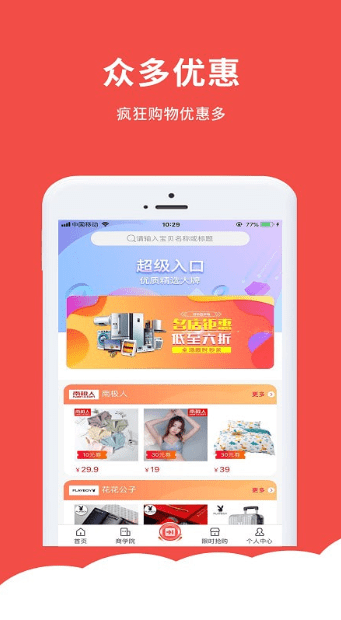 1、超值折扣大汇集,限时秒杀、限量抢购、9.9元包邮、优惠促销等活动实时更新。