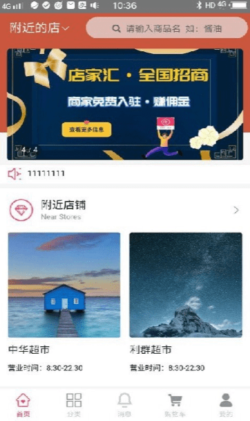 用户进入店家汇app平台可以看到附近500米的便利店,一健下单,由店长亲自送货上门,保证商品的品质和配送时间内准时到达,同时基本上10分钟就可以完成订单,基于现在社区500配送需求日益增长而开发的一款软件。