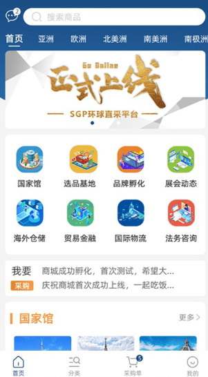 SGP环球直采,作为S端是围绕进出口企业交易及服务的智慧供应链平台。进出口B端企业通过对“SGP"平台端的网络化共享,实现全球扩展渠道,资源共享、产业架构、技术支撑、贸易金融、商品选择、海外仓储、国际物流等多方面的优化,更好地服务C端客户。